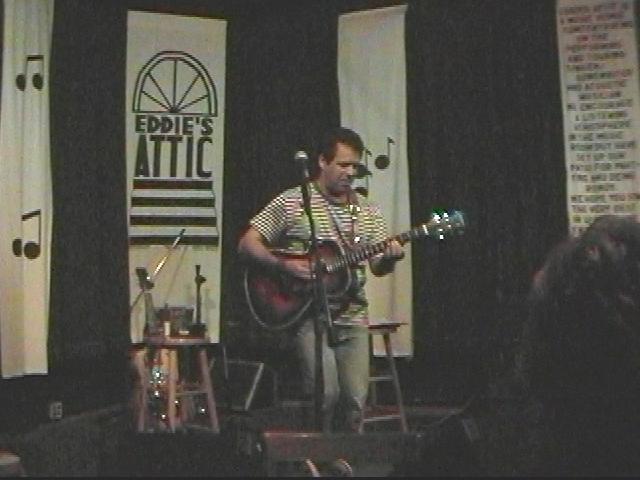 It was great to be able to see Cliff again, this time in my home town of Greenville, SC (at "Coffee Underground"). After that, I just *had* to follow him to North Carolina and Georgia. I got to know a lot more about him. This man is a gem of a person. In Greenville, he sat with the audience members while he waited for the time to start his show, and seemed to be willing to talk about anything. He talked of his just-completed trip to Alaska, and had some great stories to tell. Cliff made us all feel important and needed. He was very appreciative for the internet presence (small, as it may be) that is provided on these pages dedicated to him. It was a great three days, and I'll do it again if I get the chance. "Thanks bunches" to Cliff, Coffee Underground, and Eddie's Attic.